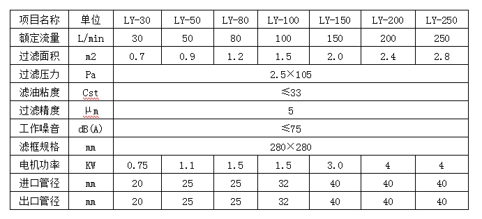 LY系列板框式加壓濾油機性能參數表